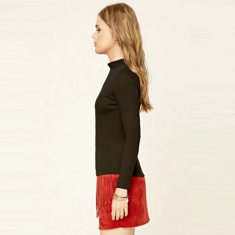 | HDY Haoduoyi Black White Brief Women Fashion Tops Street Turtleneck Ruffles Ribbing Blouse Natural Knitted Slim Casual Shirts | |||||||||||||||||||||||||||||||||||||||