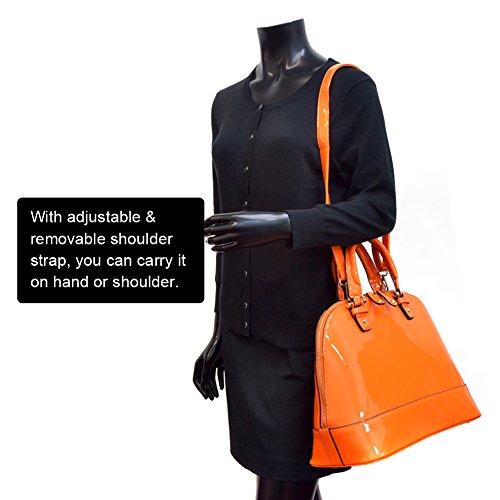 -. Feature : Top zip around closure / Rolled faux patent leather handles with a drop length of 6.5 inches / Matching patent, adjustable, removable shoulder strap / Matching gold-tone zippers and studs / Exterior back panel zipper pocket