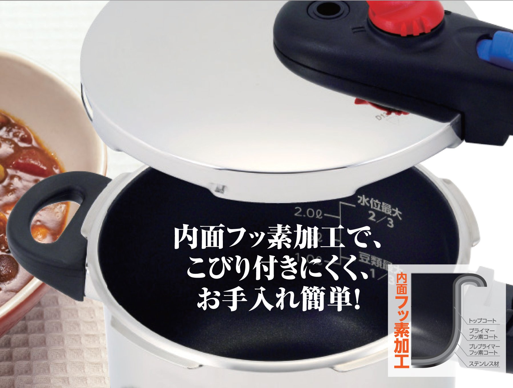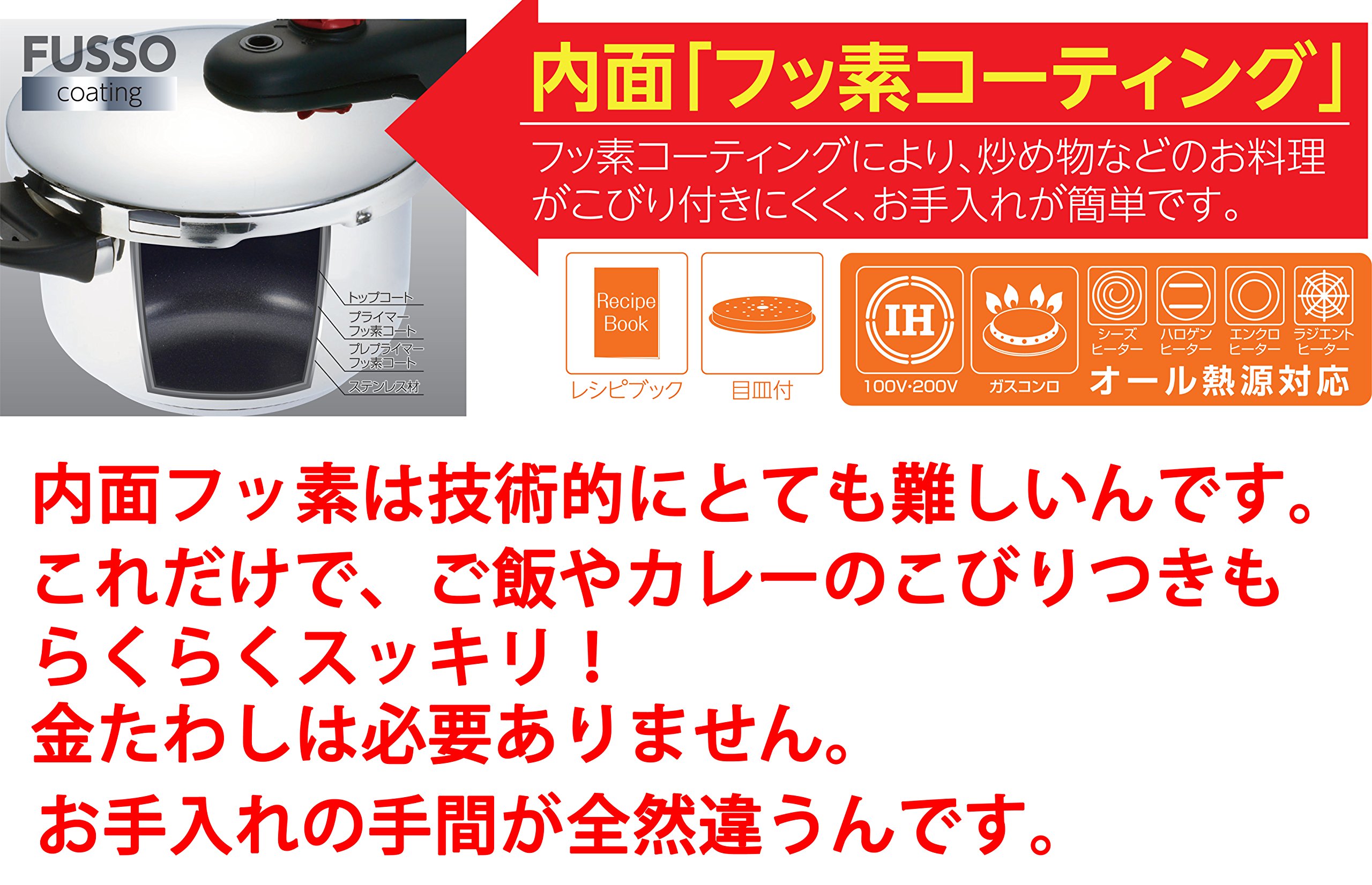 ● Pressure cooker "Doshisha", which is good at short-term cooking, produces and sells ● Easy to clean with a rare "inner fluorine coating" in the pressure cooker! It is also technically difficult! ● Because there is a dedicated recipe for pressure cooker
