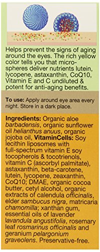 Studio : Ecco Bella Publisher : Ecco Bella Binding : Health and Beauty Product Description Water-free. Preservative-free. For sensitive skin. 70% organic. Pure protection to postpone the signs of aging and maintain the smoothness around the eyes. Trillions of VitaminCells with nutraceuticals protected by microscopic liposomes dive deep into the skin and slowly release their age-fighting benefits. 0