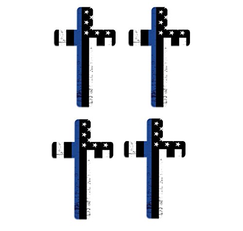 Pack of 4 3x5" Blue Lives Matter Cross Support Your Local Law Enforcement , Police Officers With The Thin Blue Line Car Decal