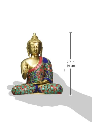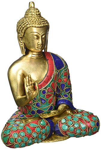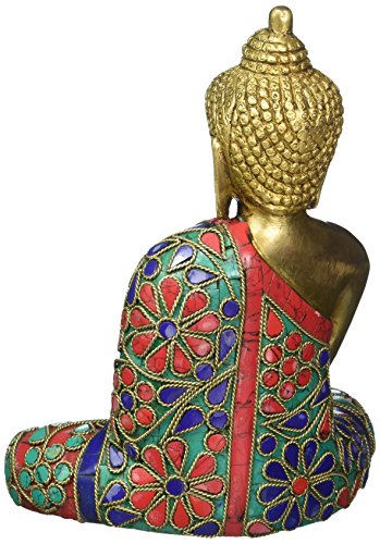 Thai Tibetan Buddha Statue-Meditating Peace Harmony Buddhism Statue- Antique Style Jeweled Hand Made Buddha in Earth Touching Mudra