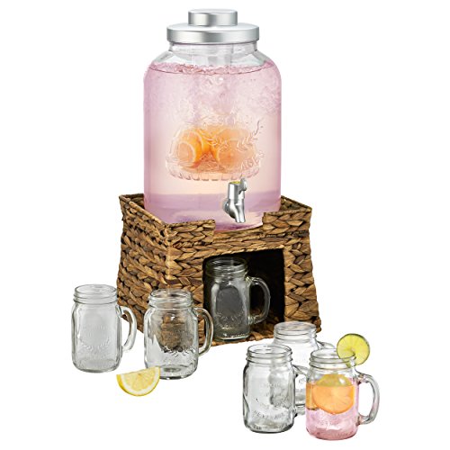 Artland Oasis Beverage Infusing Dispenser Jar Set with Stand, Seagrass, 3-Gallon, Clear
