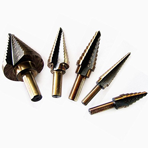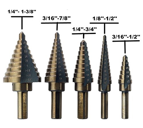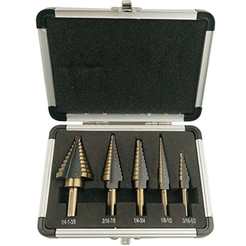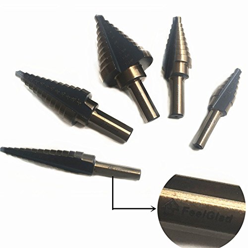 FeelGlad(TM)5pcs Titanium Step Drill Bits Set with Aluminum Case