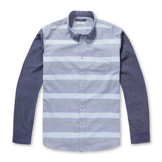 - 몸판 라이트한 블럭 스트라이프 패턴의 남성 셔츠.