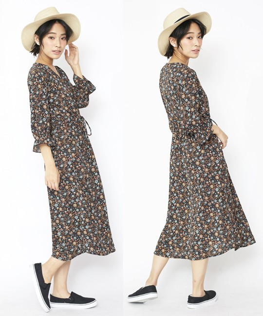 | 実寸 | 着丈:115 肩幅:39 身幅:96 ウエスト:74-96 袖丈:42 袖口:20-11 裾幅:104 |