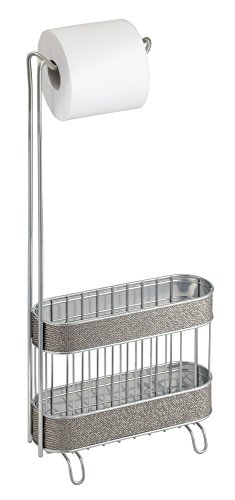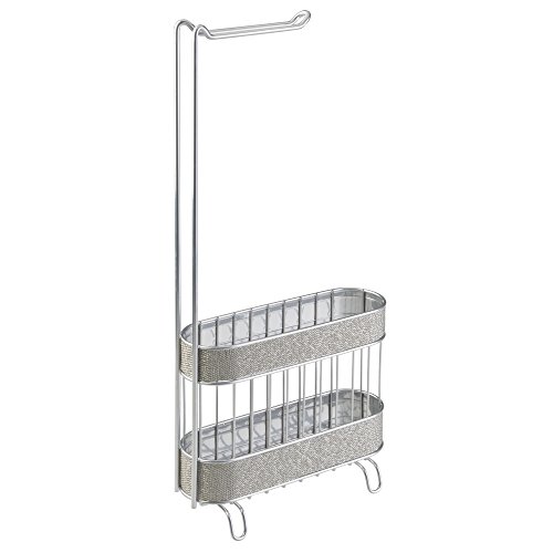 mDesign Free Standing Toilet Paper Holder and Newspaper, Book, Magazine Rack for Bathroom - Metallic