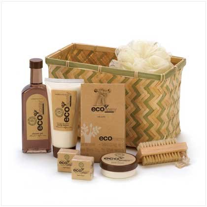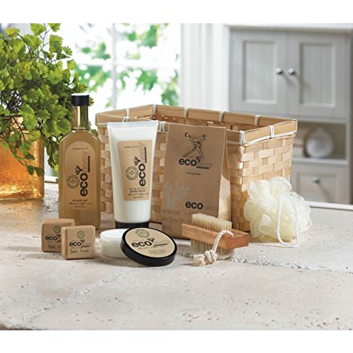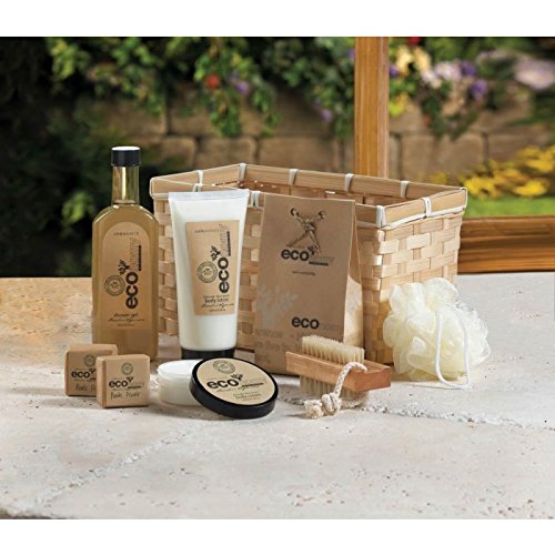 Studio : Furniture Creations Publisher : Furniture Creations Binding : Kitchen Product Description Eco-inspired spa delights are an indulgent treat for someone special, or just to spoil yourself! Woven bamboo basket is generously packed with body lotion, bath fizzers, body cream, bath crystals and exfoliating brush and scrubber. Bamboo sugarcane fragrance. Set includes: 7.4 fl. oz. shower gel, 6.8 fl. oz. body lotion, 1.7 fl. oz. body cream, 3.5 oz. bath crystals, bath fizzer, puff, and brush. Weight 2.2 lbs. Set: 10 1/2" x 5 1/2" x 13" high. Set. 0
