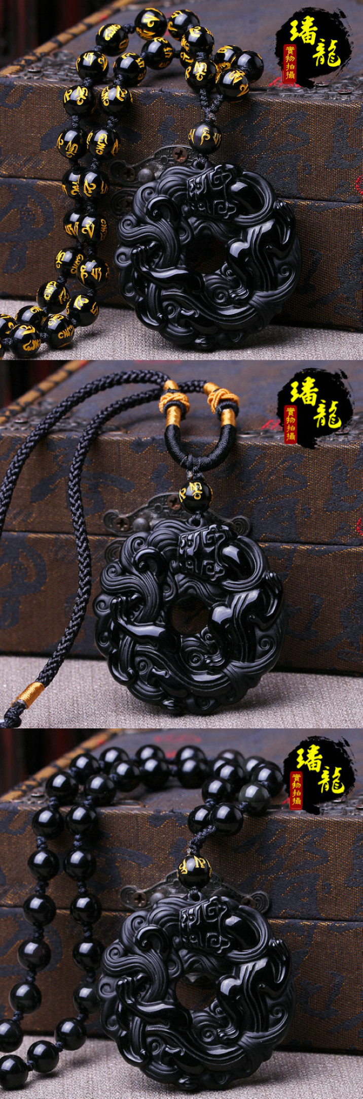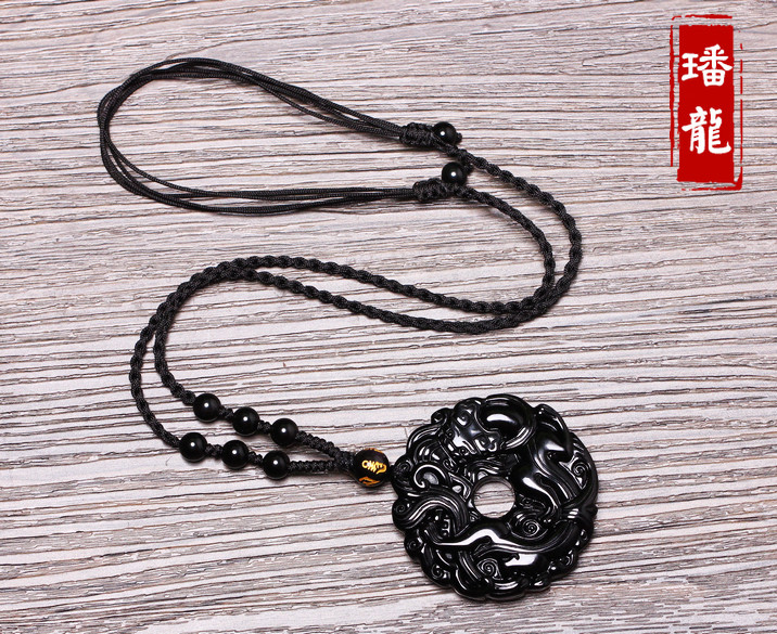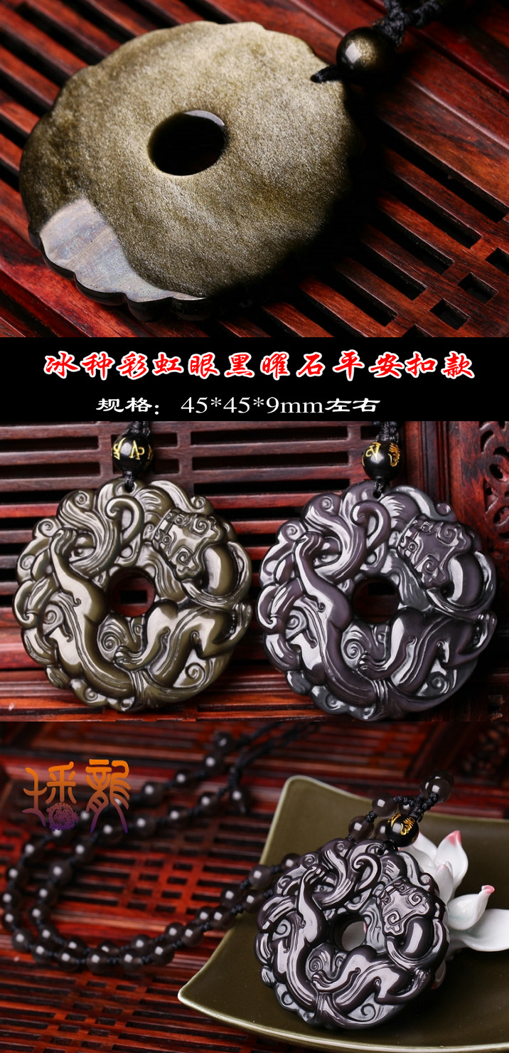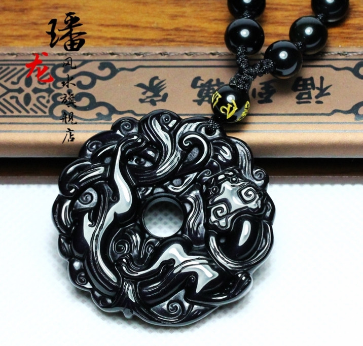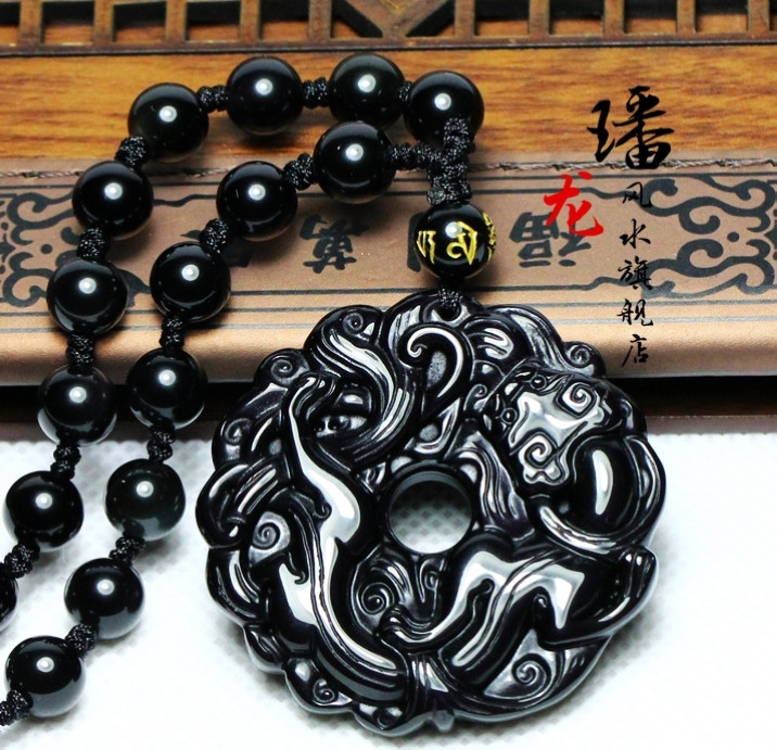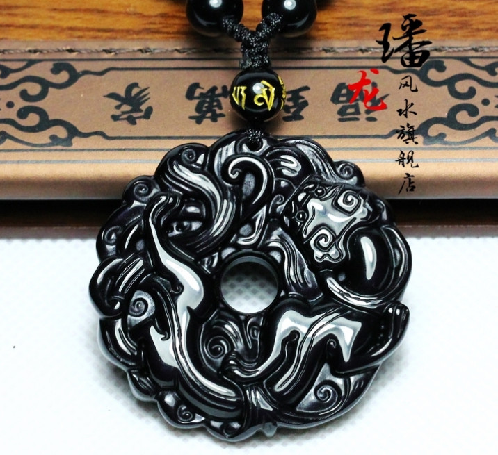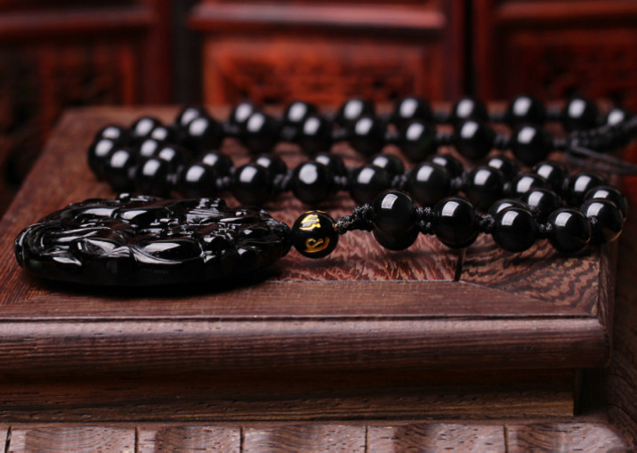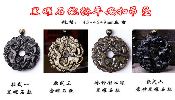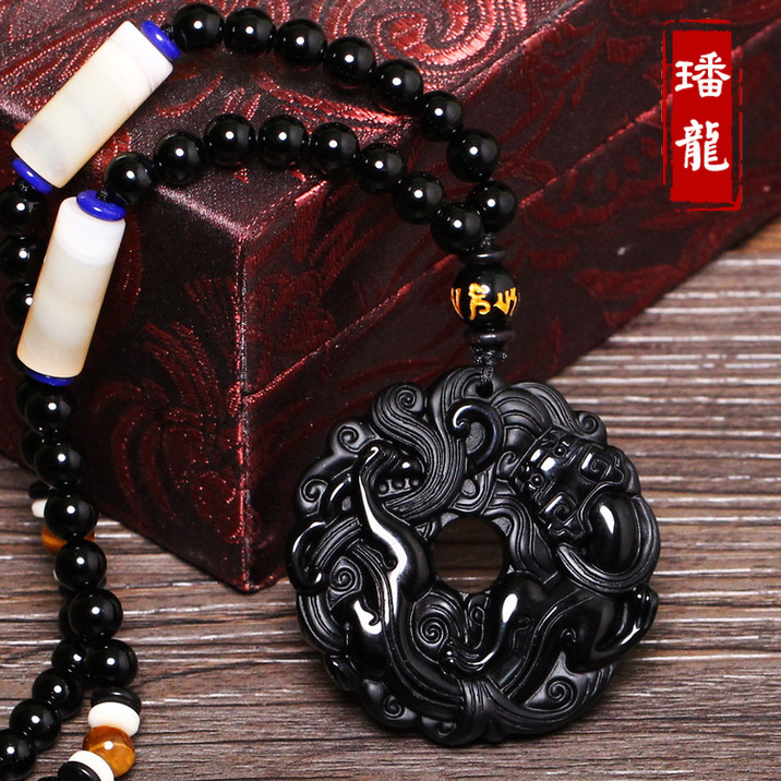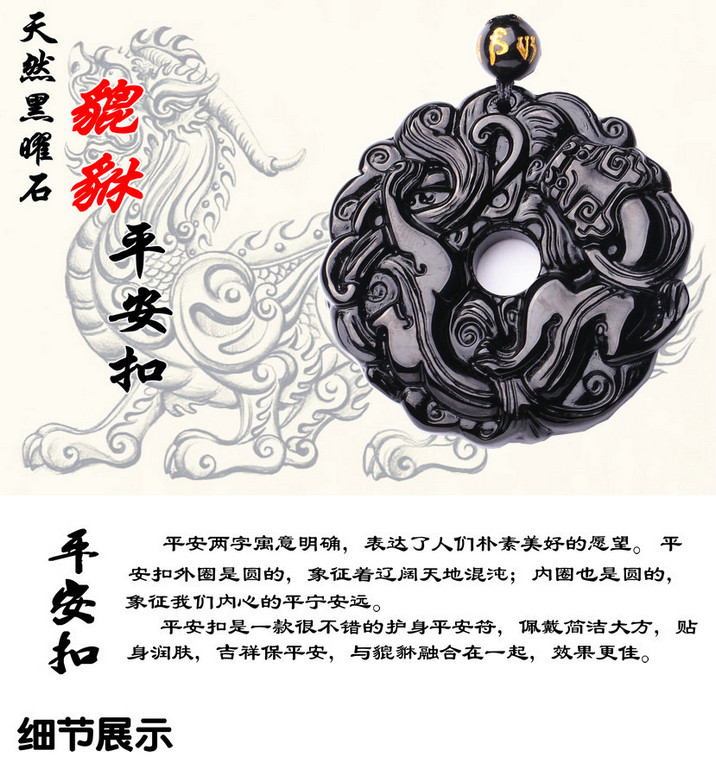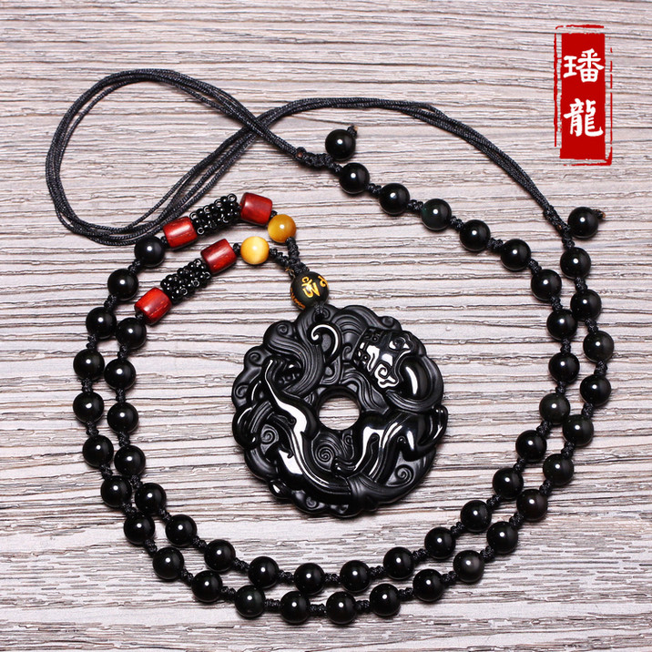 开光黑曜石貔貅吊坠男款平安扣转运珠项链男女情侣貔貅挂坠饰品