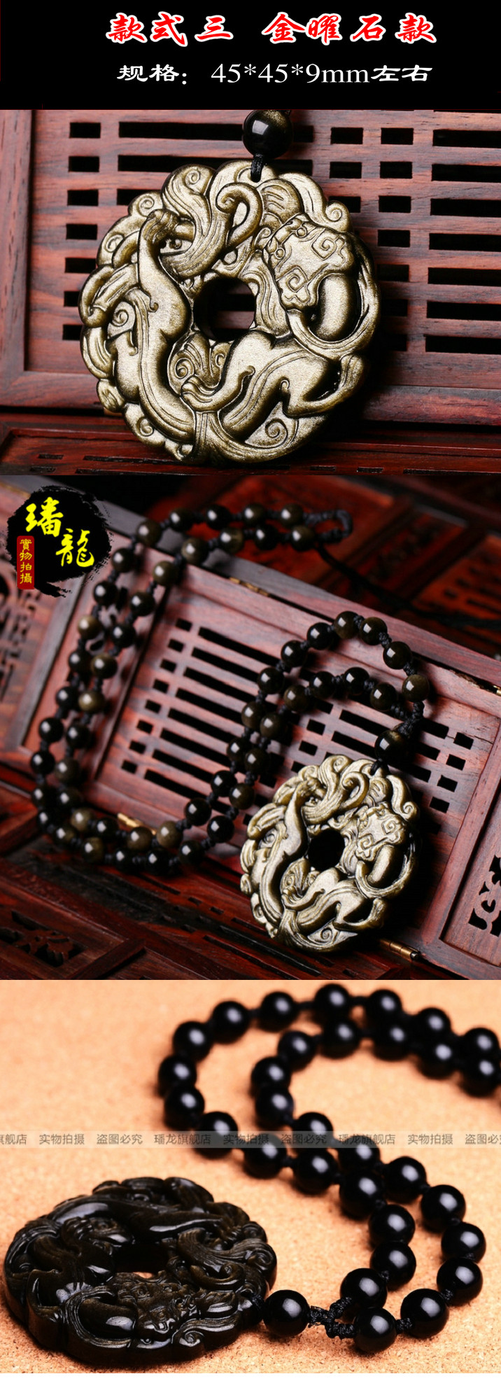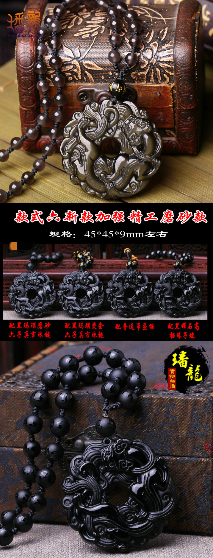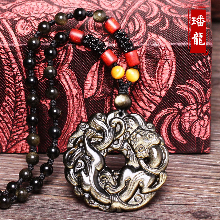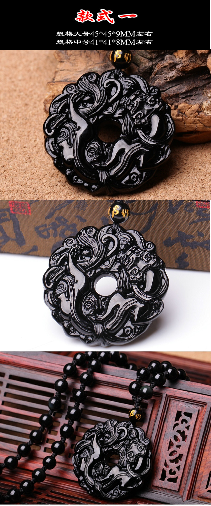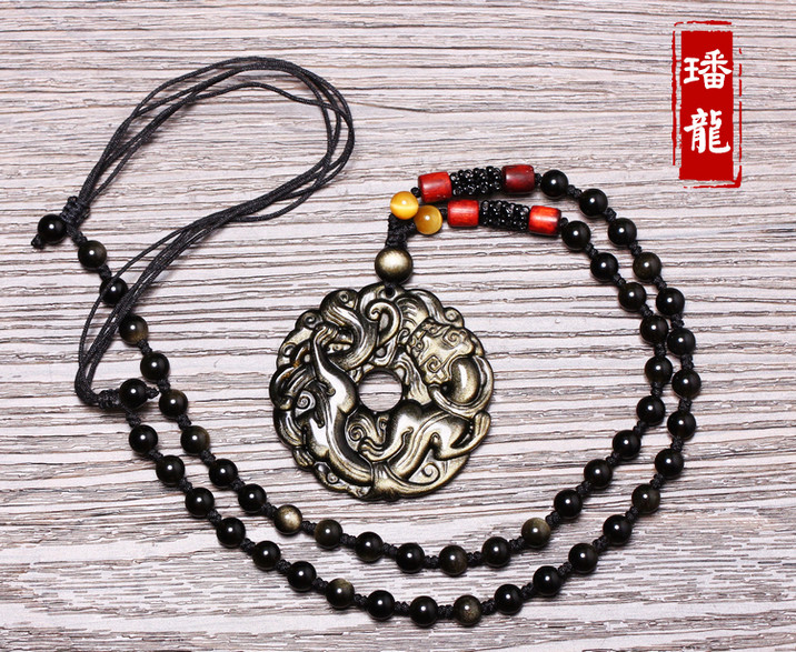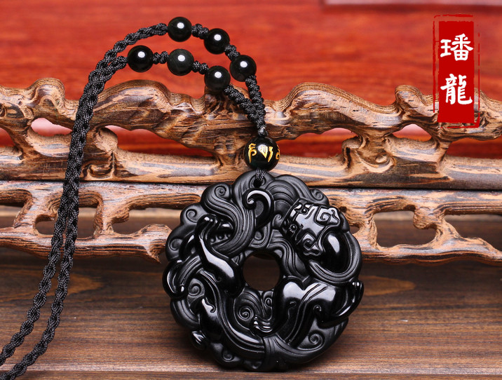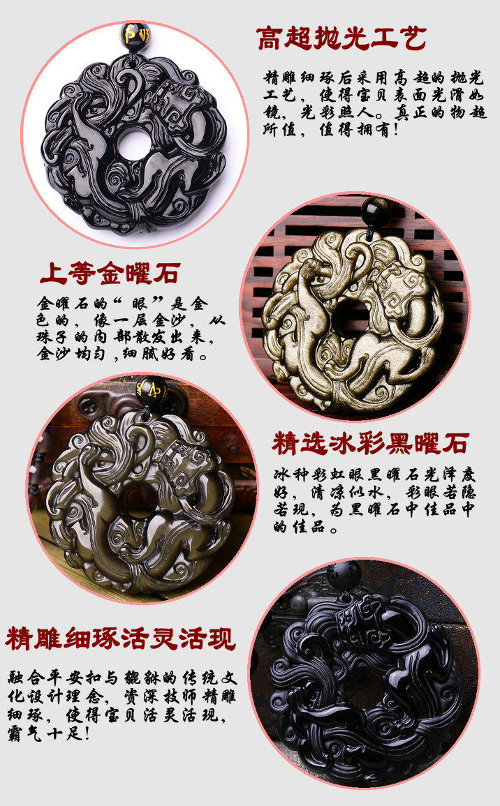 开光黑曜石貔貅吊坠男款平安扣转运珠项链男女情侣貔貅挂坠饰品