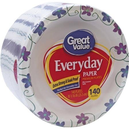 Great Value Multi-Purpose Everyday Disposable Premium Paper Plates - 140 count - 10 1/16 Inch