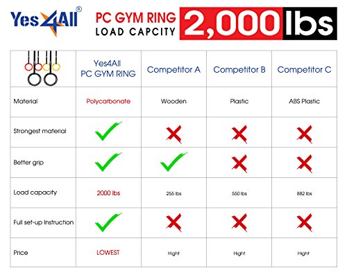 Yes4All Olympic Exercise Fitness Crossfit Gymnastic Rings with Flexible Buckles - Special Promotion - ²S68HZ