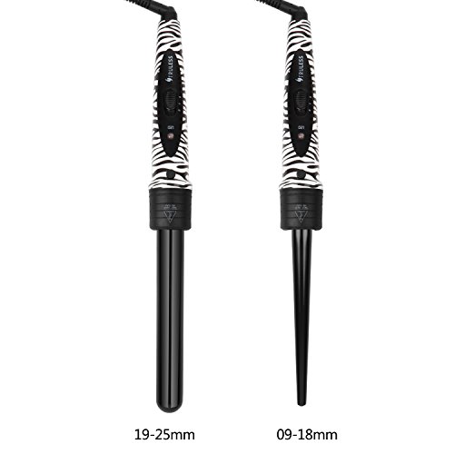 - ★WHAT YOU GET: US Plug, dual voltage (100~240V), 360 Degree Rotatable Swivel with 2.5m(8 ft) Power Cord (international standard line core), heat resistant glove will be offered for free to protect your hand when curl or straighten Hair; 2 Interchangeable curling wand ceramic barrels and hair straighterner brush carries a three-month replacement, One-year Warranty.