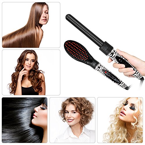 - ★PROFESSIONAL HAIR STYLING SALON SET: Includes 2 interchangeable curling wands and one ceramic hair straighterner brush, which allow maximum versatility with your curling and straightening style for a more Natural Look. For smaller curls or big curls even a smooth, silky, natural lustrous look - Say goodbye to bad hair days and hello to your new runway style!