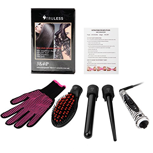 Truless Professional 3 in 1 Ceramic Tourmaline Ionic Hair Styling Salon Set with 2 Interchangeable Curling Wand Ceramic Barrels and Hair Straightener Brush...