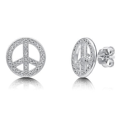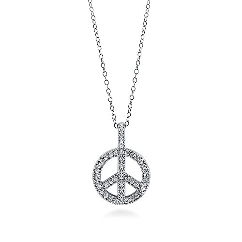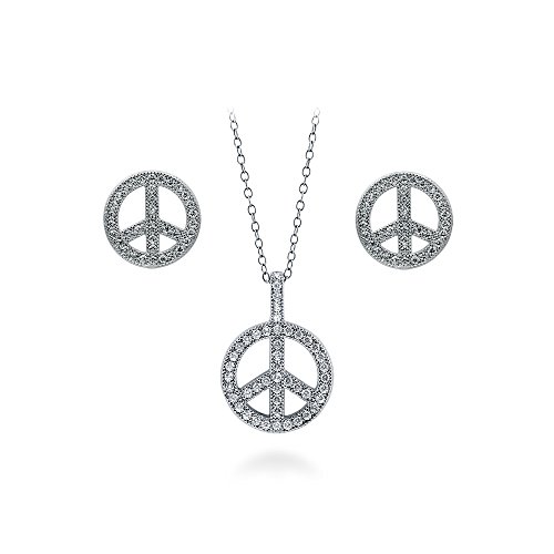 -. Title : BERRICLE Sterling Silver Cubic Zirconia CZ Peace Sign Fashion Statement Necklace and Earrings Set