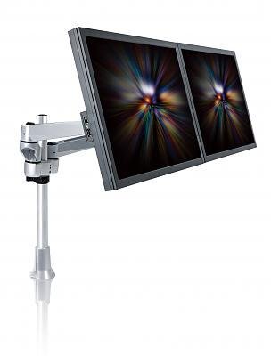 -. Feature : Designed for the following Apple Monitors: 24-inch iMac (aluminum and glass), 27-inch iMac, 24-inch LED Cinema Display, 27-inch LED Cinema Display, 27-inch Thunderbolt Display / Weight Capacity: Supports 4.4 - 19.8lbs (2 - 9kgs) for each monitor; Tilt: 105 Degree; Rotation: 360 Degree; Swivel: Max 360 Degree; Mounting Pattern: VESA compliant: 75x75 and 100x100; Maximum extension: 15.75" (400mm) / Pole length: 19.68" (500mm), makes it expandable to support 3 or 4 monitors. / 7.87" Height adjustment; Solid Aluminum die-cast construction; Neat and efficient cable management; Easy installation and dis-installation. / Quick mount & quick release designs at 3 connecting points: stand, sP.R.Ing arm and monitor end. Supports two LCD monitors; Maximum adjustment rendered by tilting, swiveling, pivoting and dynamic height adjustment.