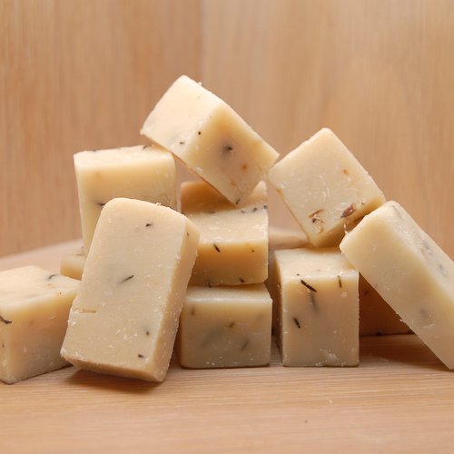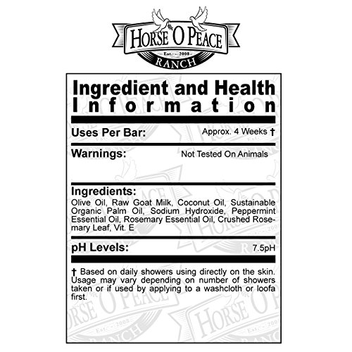 INGREDIENTSOlive Oil, Raw Goat Milk, Coconut Oil, Sustainable Organic Palm Oil, Sodium Hydroxide, Peppermint Essential Oil, Rosemary Essential Oil, Crushed Rosemary Leaf, Vit. E