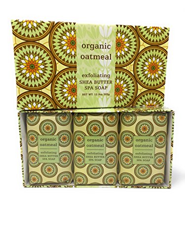 French-milled, luxurious vegetable soaps enriched with shea butter, essential oils & natural extracts in captivating botanical scents. Individually wrapped soaps sculpted with a soft bevel and presented in a gift box of three (net wt. 12.9oz). Enriched with shea butter & cocoa butter and blended with exfoliating organic oatmeal.Feature