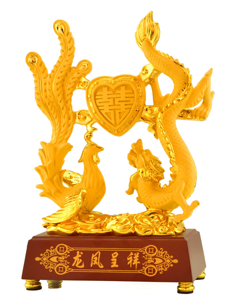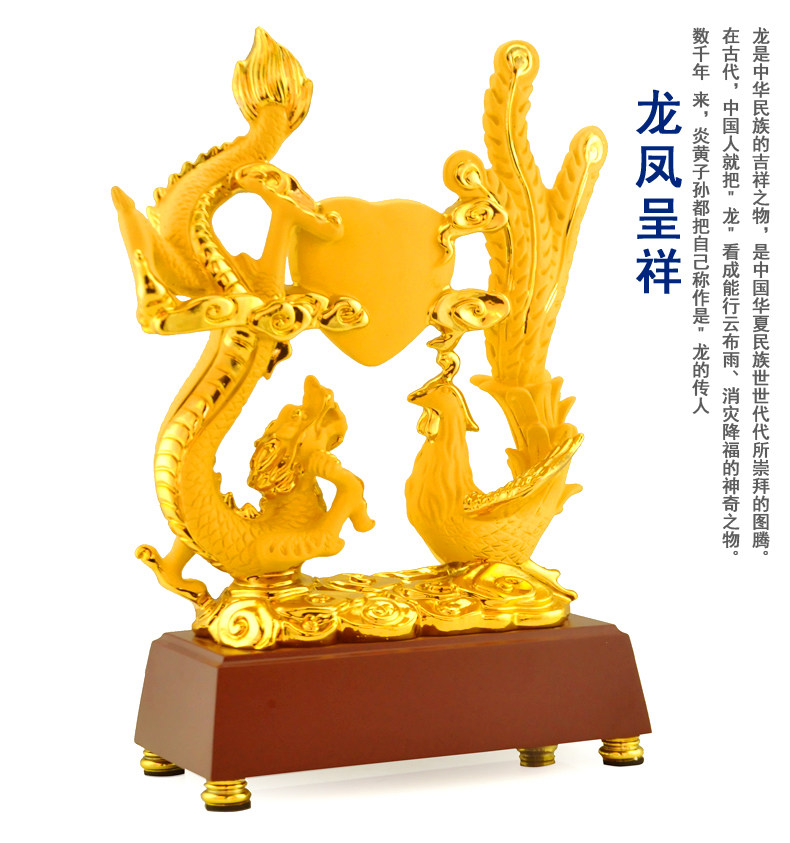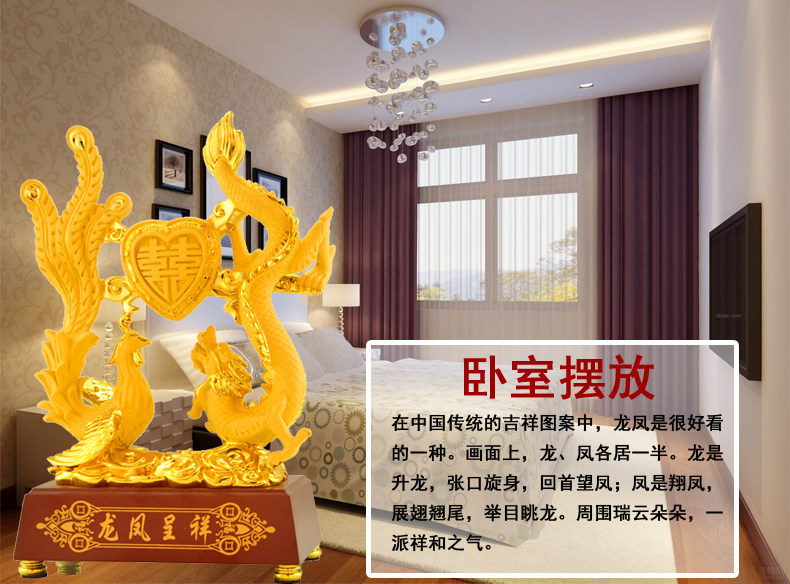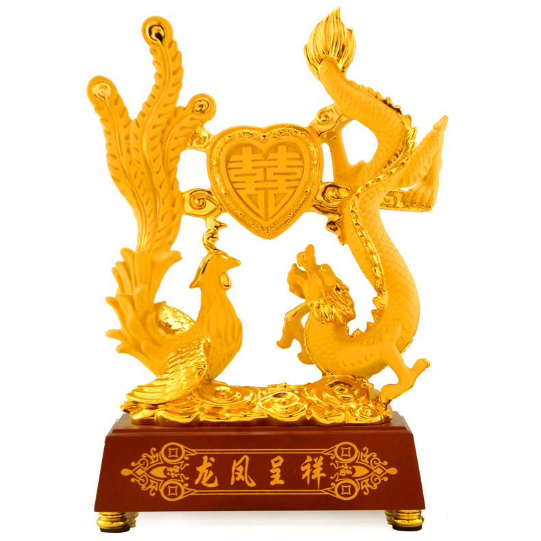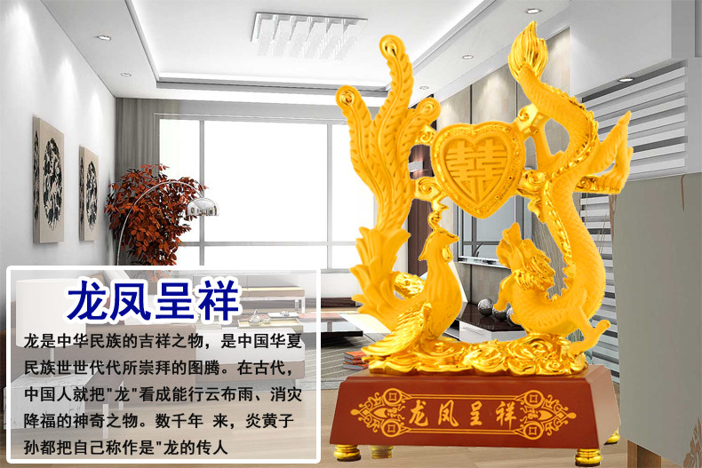 创意结婚礼物龙凤呈祥摆件生肖树脂工艺品客厅装饰品新房乔迁礼品