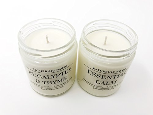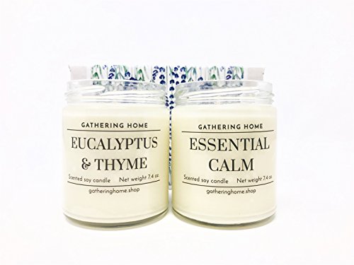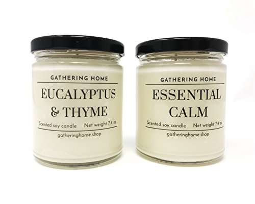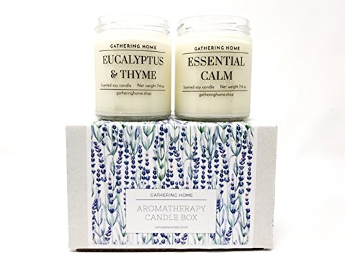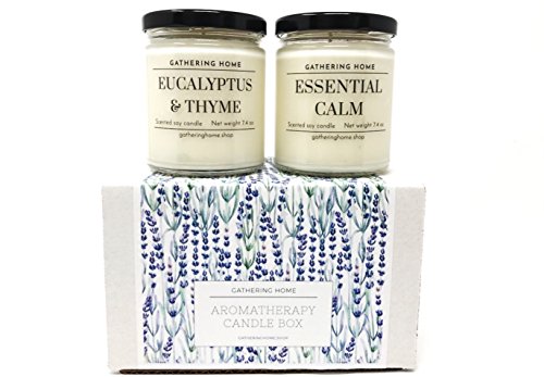 Gathering Home Aromatherapy Candles Gift Set, 2 Soy Scented Candles with Lavender and Eucalyptus Essential Oils in Gift Box, 100 Hours of Burn Time