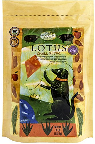 Your dog will be barking "more please" for the Lotus Oven-Baked Lamb & Turkey Liver Small Bites Recipe Grain-Free Dry Dog Food. An excellent choice for dogs with allergies and sensitivities, this recipe is made with fresh lamb, turkey liver and Polluck-and you can hold the potatoes and grains that often cause tummy upsets. The natural ingredients are then oven baked into crunchy yumminess, which takes a little longer, but the results are worth it because it retains more amino acids, proteins and vitamins for your dog. And because oven baking means lower starch gelantinization, that equals lower glucose levels in the blood. Ingredients: Lamb, Chickpeas, Peas, Turkey Liver, Tapioca Flour, Pollock, Dried Egg Product, Brewers Dried Yeast, Pea Fiber, Pea Protein, Flaxseed, Dried Sweet Potato, Dicalcium Phosphate, Calcium Carbonate, Salt, Pumpkin, Apples, Sweet Potatoes, Carrots, Spinach, Blueberries, Calcium Propionate, Olive Oil (Preserved With Mixed Tocopherols, And Citric Acid), Potassium Chloride, Choline Chloride, Garlic, Salmon Oil, L-Ascrobyl-2-Polyphosphate (A Source Of Vitamin C), Dried Kelp, Zinc Proteinate, Iron Proteinate, Dried Lactobacillus Acidophilus, Lactobacillus Lactis, And Lactobacillus Casei Fermentation Solubles, Inulin, Yucca Schidigera, Vitamin E Supplement, Grape Seed Extract, Copper Proteinate, Manganese Proteinate, Niacin, Sodium Selenite, Calcium Pantothenate, Folic Acid, Vitamin A Supplement, Riboflavin, Calcium Iodate, Vitamin B12 Supplement, Thiamine Mononitrate, Pyridoxine Hydrochloride (Source Of Vitamin B6), Vitamin D3 Supplement, Rosemary Extract.Feature