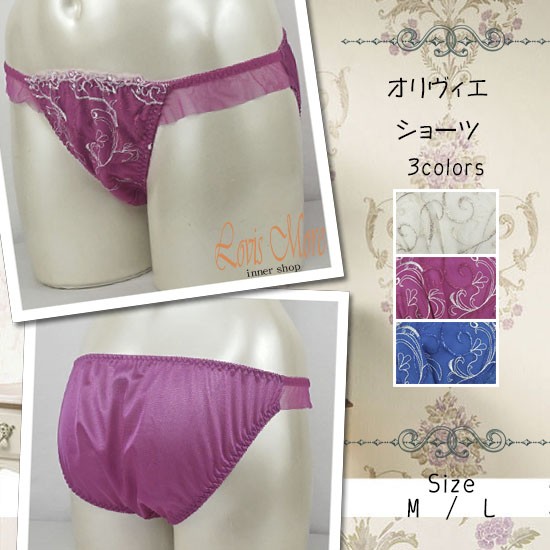 オリヴィエ ブラシリーズのショーツです。 繊細に絡み合う美しい刺繍を主役にしたショーツ。 さり気ないラメ糸使いがラグジュアリーな仕上がりに★ サイドは可愛いチュールレースになっています♪ 上下別売りなので自分の好みでコーディネートができ、魅力的な女性へと変身♪ お揃いのブラジャー・Tショーツ・スリップもございます(別売り)