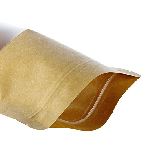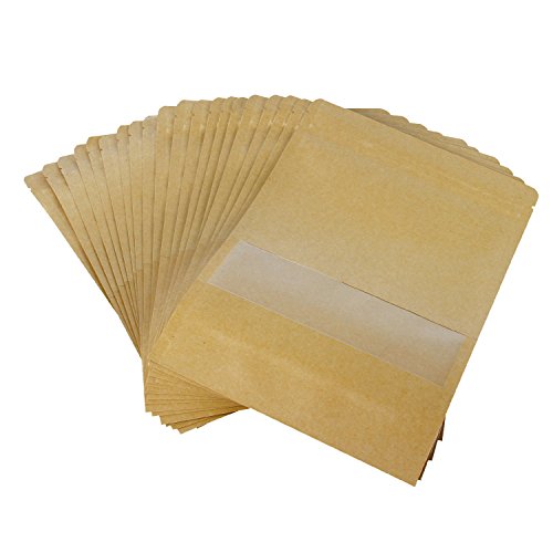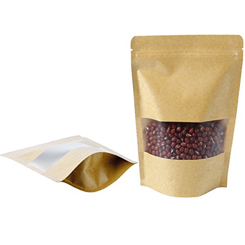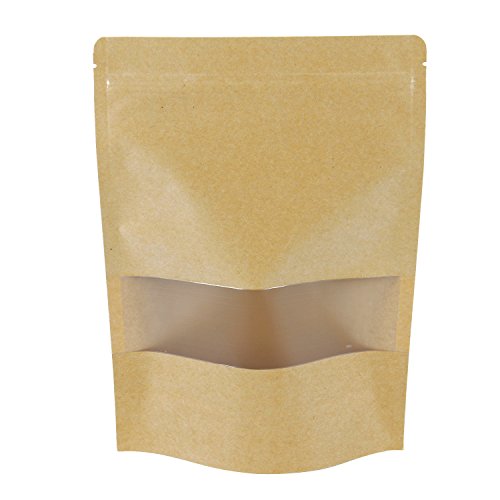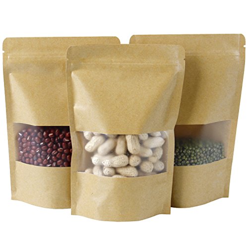 RUSPEPA 7"x10"x3" Kraft Paper Bags Zip Lock With Windows For Candy and Tea Nut Dried Fruits (20 pack)