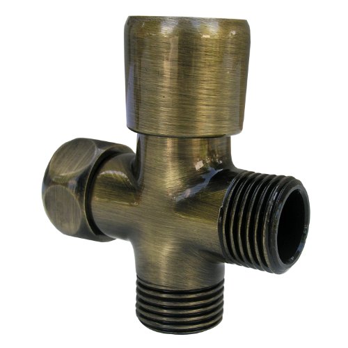 Simpatico 84541A Brass Push Button Style Personal Shower Diverter with 1/2 Inch Female Inlet and 1/2-Inch Male Iron Outlets, Antique Brass