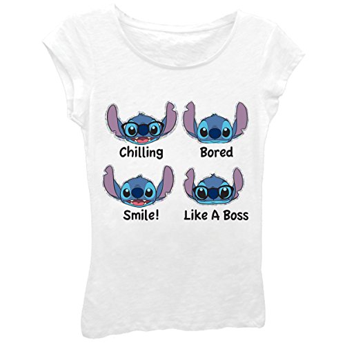 Disney Big Girls' Lilo Emotions Stitch Short Sleeve Tee, White, L