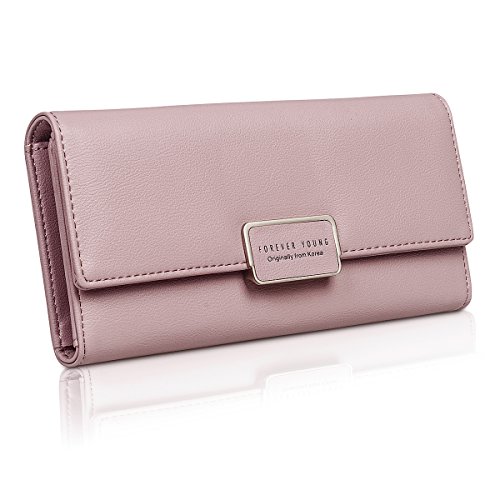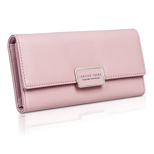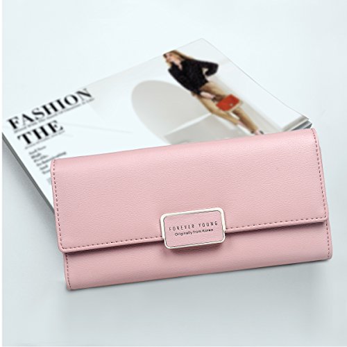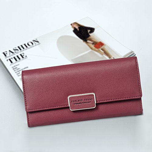 | Fency Women's Multi-Card Faux Leather Wallet Long Tri-fold Matte Net Surface Purse |