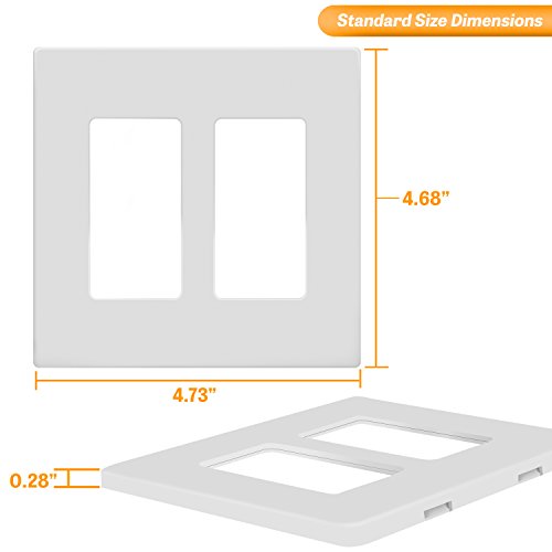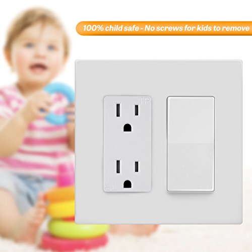 Shop the Child Safe, Unbreakable and Undeformable Screwless Wall Plate for your outlet and switches! No excess trim on the cover plate! ENERLITES screwless wall plate works with all kinds of decorator style receptacles including GFCI outlet, dimmer, sensor, timer and single, double switches. Enerlites manufactures their wall plates in all sizes including standard, mid-size and oversize. Enerlites Screwless Wall Plates has sleek decorative finish and smooth appearance. It includes two pieces cover plate and sub plate that holds the wall plate for all decorator switches, outlet, receptacles, sensors, dimmers and timers. Unlike many other brands which use nylon material, Enerlites wall plates are made of unbreakable PC Poly carbonate material providing needed flexibility with great resillience to restore to its normal shape. Wall plate made of nylon is soft but easy to be bent or twisted during installation, transportation or packaging. Once that happens, the shape of the wall plate is hard to resume to normal flat. Some other wall plates made of brittle materials are prone to breakage. Enerlites wall plates use unbreakable polycarbonate, which makes the wall plate sufficient flexible yet able to stay in sleek shape, flat and smooth look even after installation. The easy snap on Enerlites Screwless Wall Plates are ideal for retrofit to any decorator installation for contractors to use, meanwhile it enhances safety significantly for children especially when Enerlites Screwless Wall Plate works with GFCI outlet. Replacing all the normal wall plate of GFCI outlet with Enerlites Screwless Wall Plate will stop children's effort to touch the screws on the cover. Wide choices in color, Enerlites wall plate has 1 gang, 2 gang, 3 gang, 4-gang and 5-gang sizes to be the switch cover of toggle switches, double switch and many others. Find your screwless switch cover wall plate!Feature