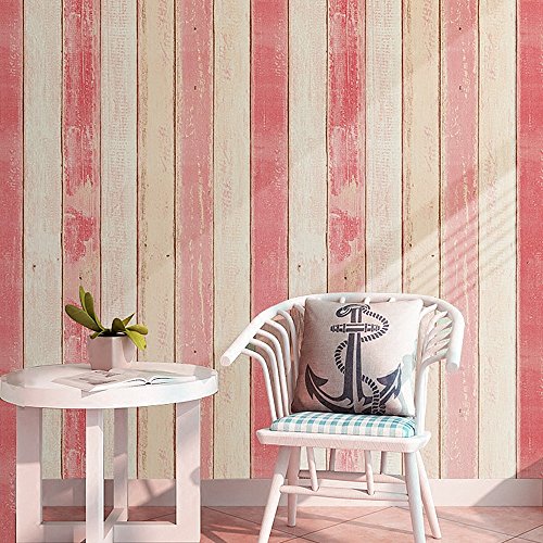 -. Title : Blooming Wall Distressed Wood Panel Peel and Stick Wall Decor Wallpaper, Pink&Beige