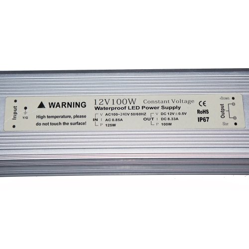 ECO-LITE Waterproof 100 watt 12 volt LED Power Supply suitable for 12v LEDs application to protects them from line-voltage fluctuations, or for any other 12Volts DC electrical device