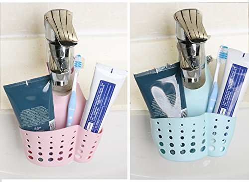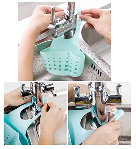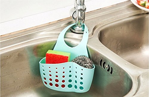 Hanging Silicone Kitchen Gadget Storage Organizer, Sponge Sink Holder By Grocery House (Blue)