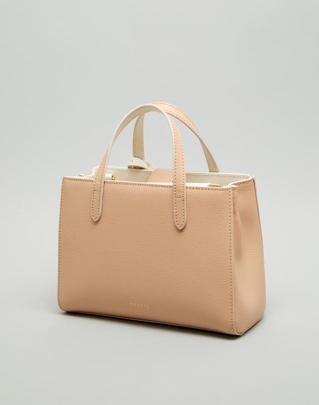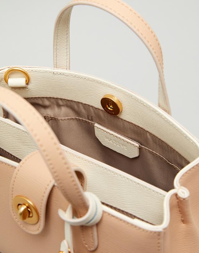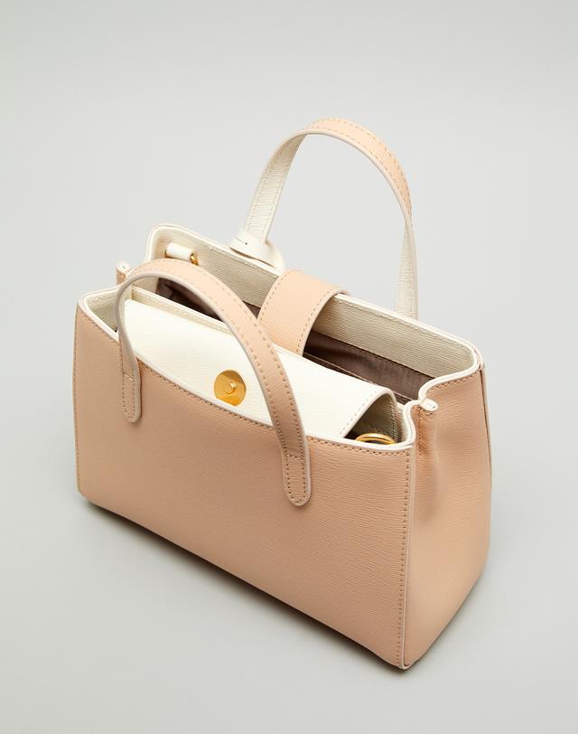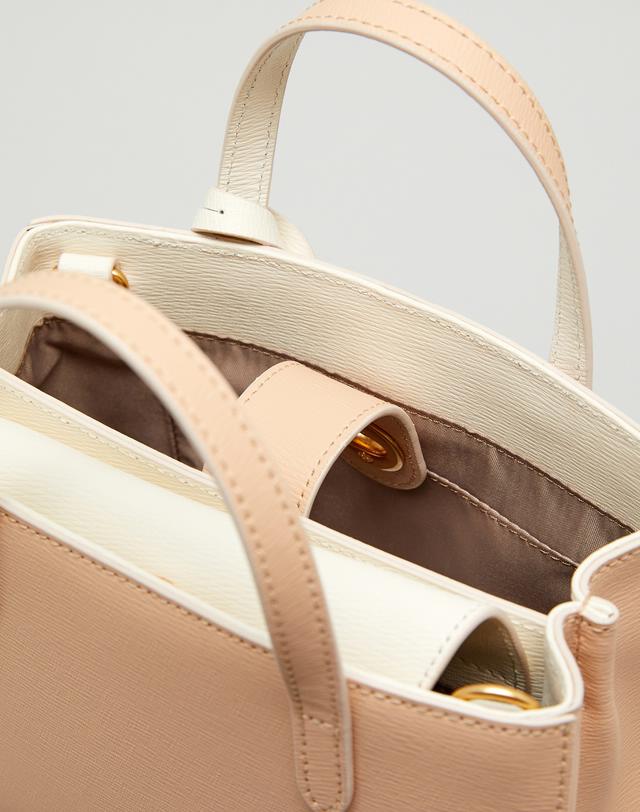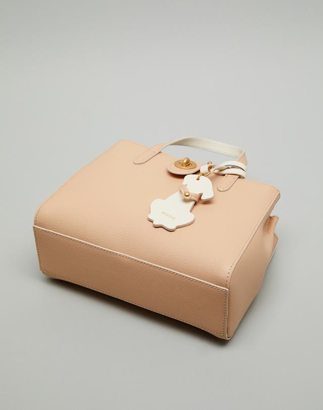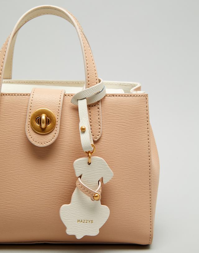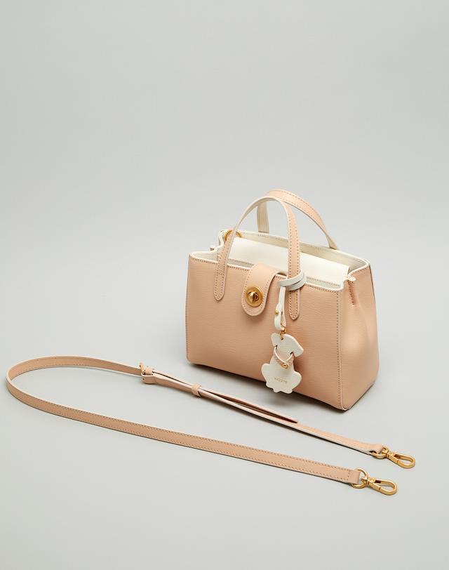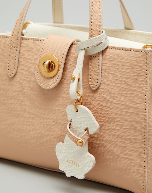 [HIBA9E033I2_베이지 배색 강아지참장식 가죽 2단 토트백]