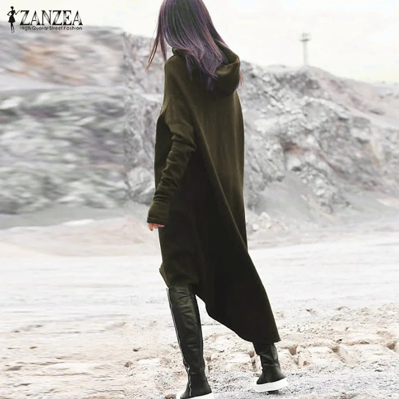 Feature: Solid Hoodie Sweatshirt Warm Baggy Dress