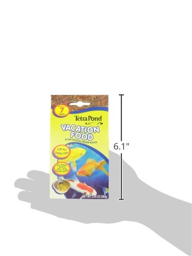 -. Binding : Misc. -. Brand : Tetra Pond -. Feature : 1 Block / Keep peace of mind while travelling with Tetra Pond Vacation Food / Gel based block for feeding up to 7 days / Precise amount of vitamins and nutrients help support immune system / Will not cloud water -. Label : Tetra Pond -. Manufacturer : Tetra Pond -. Model : 16477 -. PackageQuantity : 1 -. ProductGroup : Pet Products -. ProductTypeName : PET_SUPPLIES -. Publisher : Tetra Pond -. Studio : Tetra Pond -. Title : TetraPond 16477 Vacation Food Slow Release Feeder Block, 3.45 Ounce