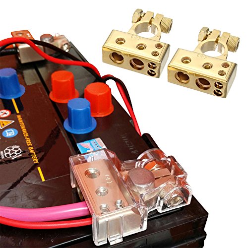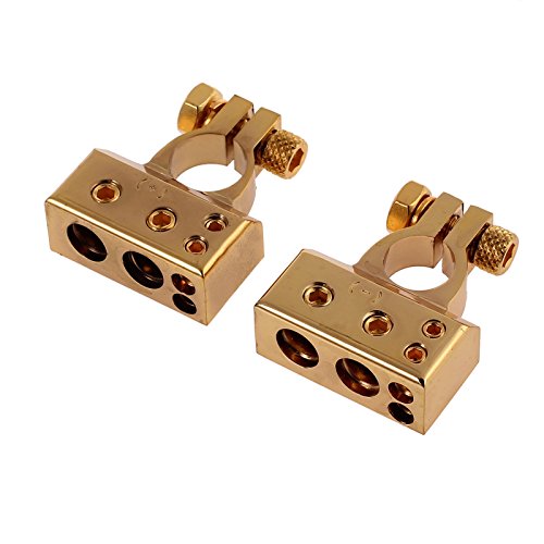 Studio : Zivisk Publisher : Zivisk Binding : Electronics Product Description Feature: 1. Simple to operate and convenient to use. 2. Allen sets screws to hold wire securely. 3. Help to enhance your car's under-bonnet appearance, or complete your in-car stereo installation. 4. Perfect for advanced audio technology, commercial use, heavy-load lighting or power inverter charging systems. 5. Positive and Negative Terminals Accept one 2 gauge, one 4 gauge, and two 8 gauge connections. Specification: Color: Gold Material: copper alloy Size: 1.77" x 2.3" x 0.71" Package List: 1 x Car Battery Terminal (Positive) 1 x Car Battery Terminal (Negative) 0