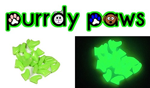 Studio : Purrdy Paws Publisher : Purrdy Paws Product Description Glow in the dark! Unique yet functional nail caps for your cat. In daylight they are an attractive green color that your pet will wear with pride, but when given enough light (sunlight being the best,) these nail caps will emit a green glow in the dark for a short time. The are especially striking under black light.