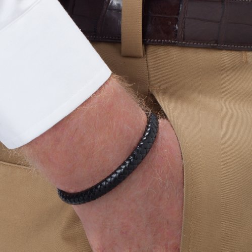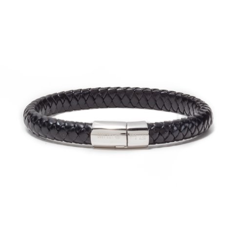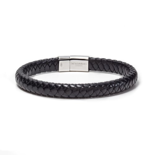 Tateossian Men's Leather Cobra with Sterling Silver Clasp Bracelet, Medium, 18 CM, Black