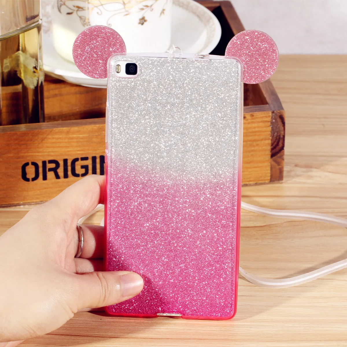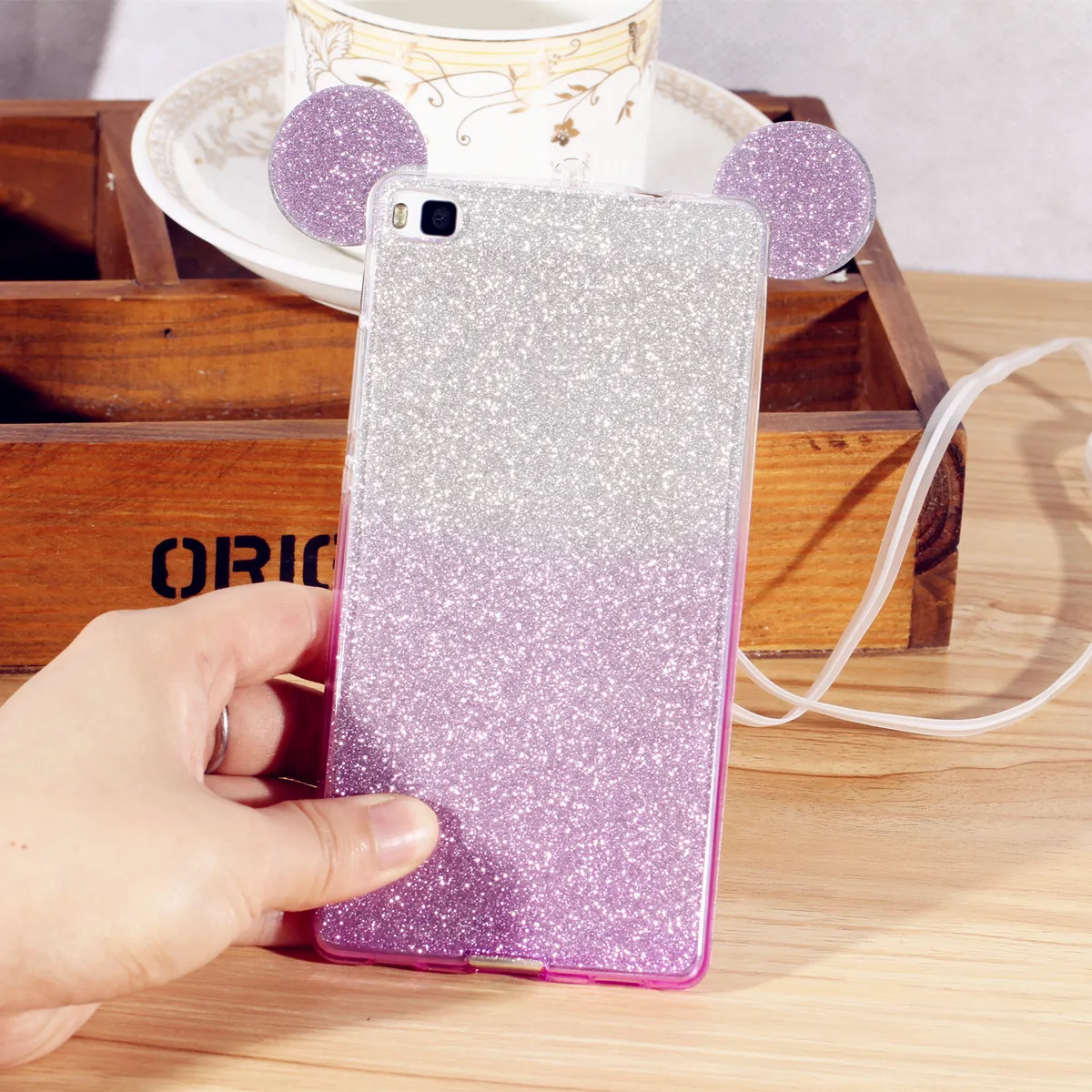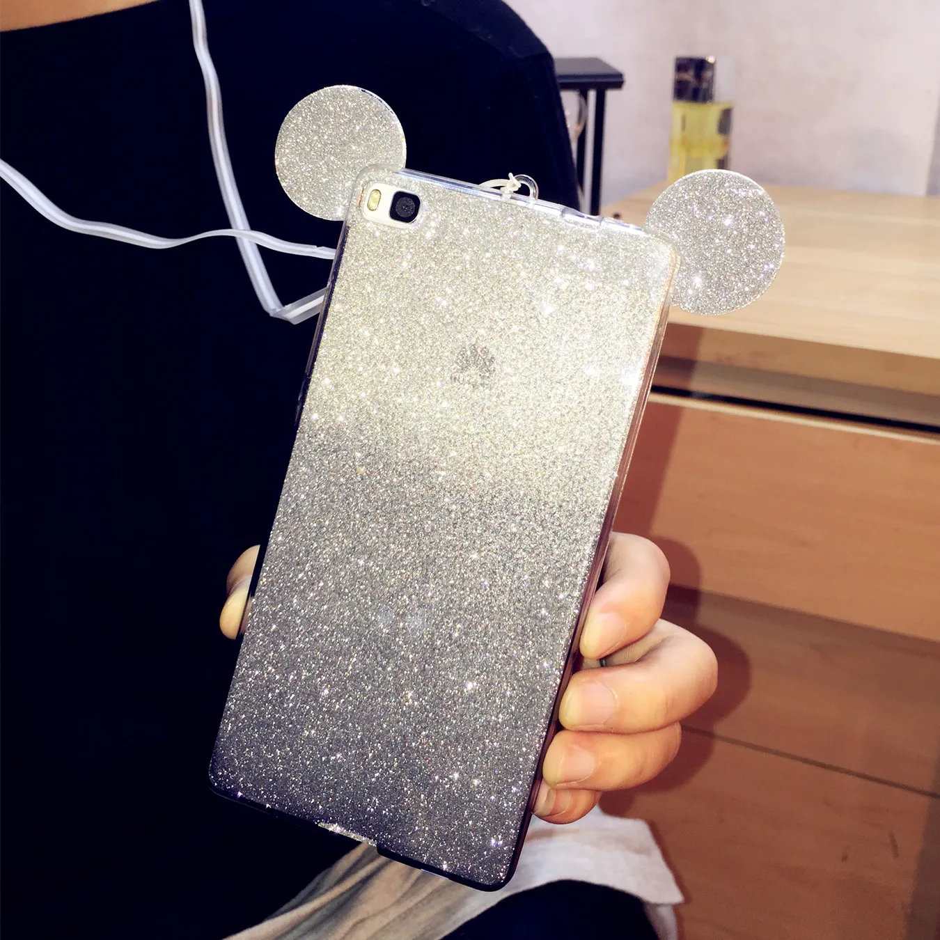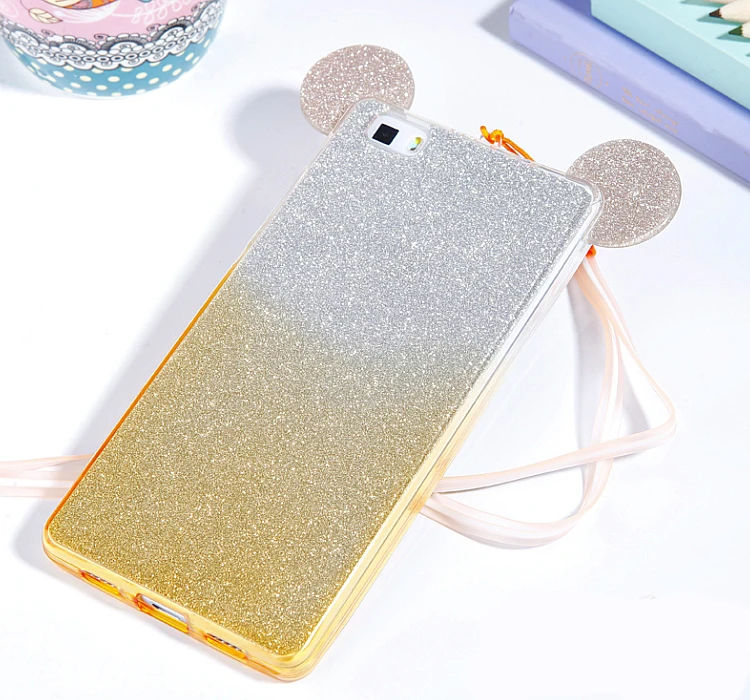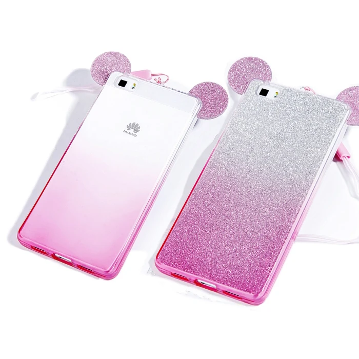Size:FFor Huawei Honor 4x 5x 4c pro Rhinestone Ears Soft Transparent TPU