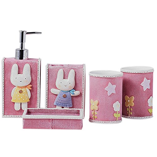 -. Title : VICTORY,Country Style Resin 5PC Bathroom Accessories Set Soap Dispenser/Toothbrush Holder/Tumbler/Soap Dish Pink Rabbit