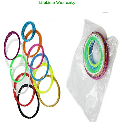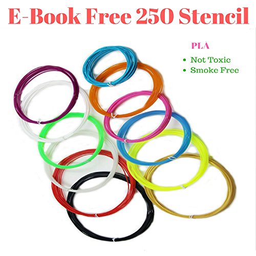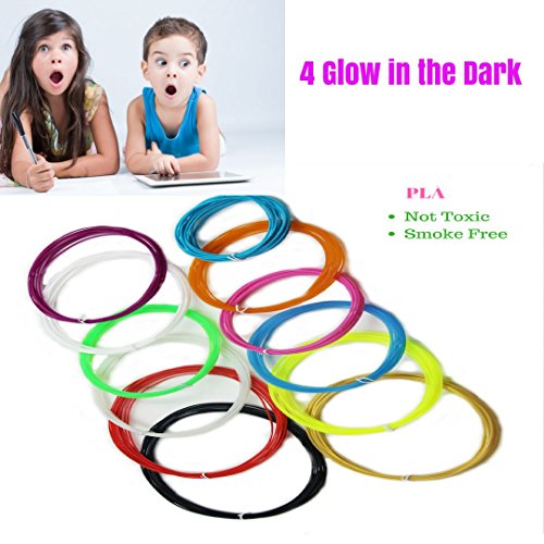 3D Pen Filament Refills 1.75mm PLA Linear Feet Total 12 Different colors fun pack FREE Stencils eBook & 4 Glow In Dark Colors Included