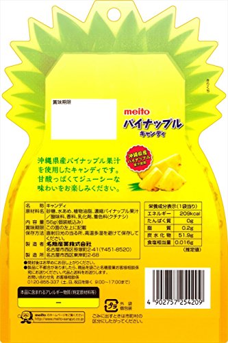 原材料:砂糖、水あめ、植物油脂、濃縮パイナップル果汁/酸味料、香料、乳化剤、着色料(クチナシ)