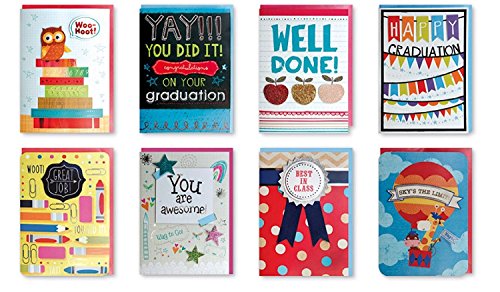 B-THERE Assorted Handmade Embellished Congratulations Graduation Greeting Cards Boxed, Designs Congrats Grad for Him or Her Elementary, Set of 8