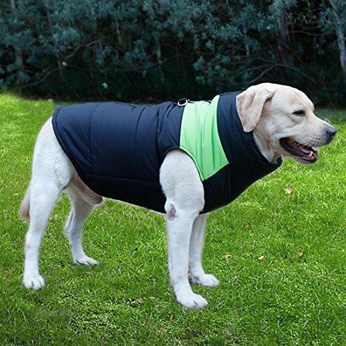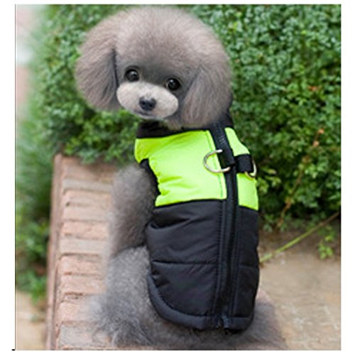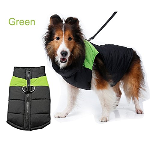 -. Title : Pet Dog Coat Waterproof warm Jacket With D-Ring, Warm Padded Puffer, Chest Protector Winter Warm Harness Vest Jacket Puppy Clothes Vest ski suit For Small Medium Large Dogs (XXL, Green)
