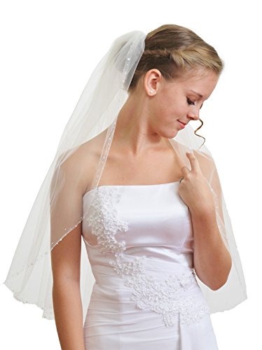 SparklyCrystal Women's Wedding Veil 1 T Cut Edge Elbow Length VE7B2