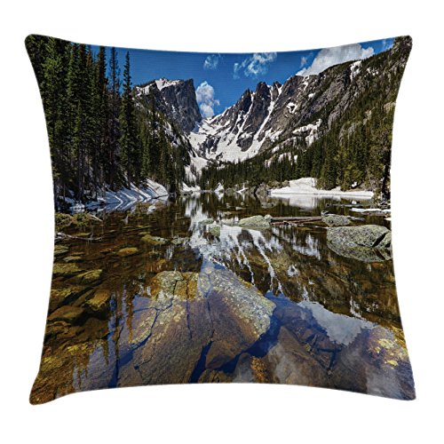 (Ambesonne)/Bedding Bath/Bedding/DIRECT FROM USA/Landscape Throw Pillow Cushion Cover by Ambesonne, Dream Mirroring Lake at the Mountain Park in...