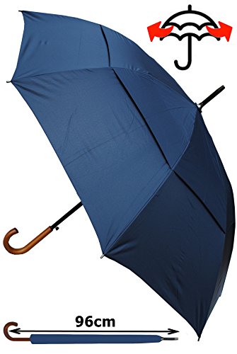 -. Title : COLLAR AND CUFFS LONDON - Windproof EXTRA STRONG - StormDefender City Umbrella - Vented Canopy - HIGHLY ENGINEERED TO COMBAT INVERSION DAMAGE - Auto Open - Solid Wood Hook Handle - Large - Navy Blue